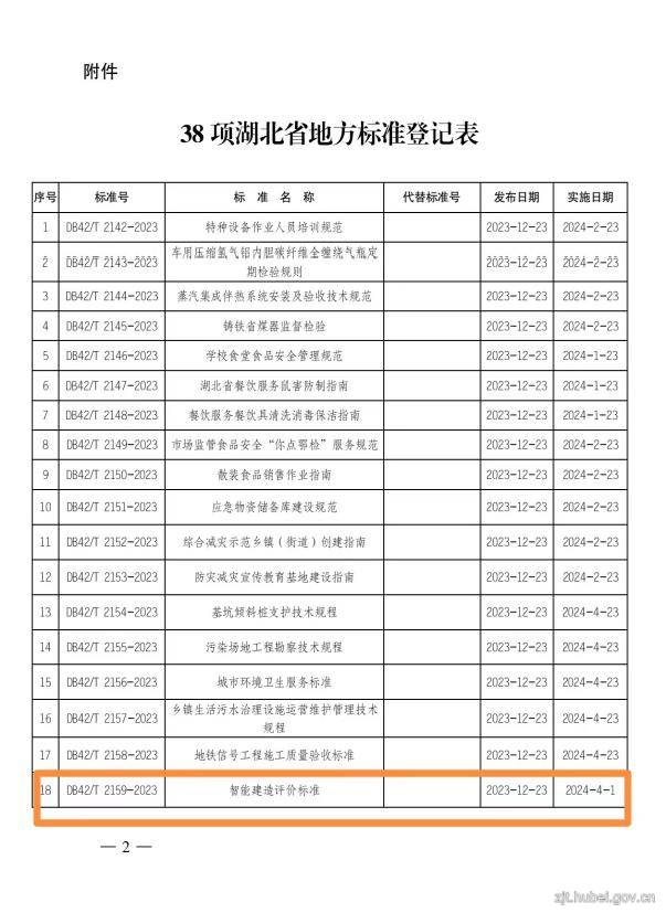 綠色通道立項,多組分布式調(diào)研,大量項目數(shù)據(jù)采集,龍頭企業(yè)集中攻關(guān),12月23日,湖北省市場監(jiān)督管理局公告發(fā)布我省《智能建造評價標準》(DB42/T2159-2023)。