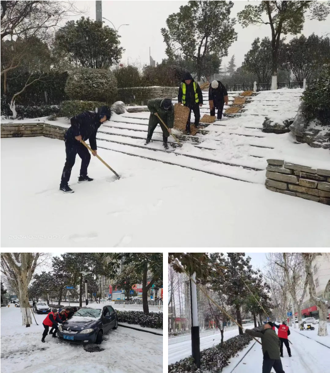 綠化處清理各游園必要通行道路積雪及各道路樹木積雪,幫助打滑車輛通行