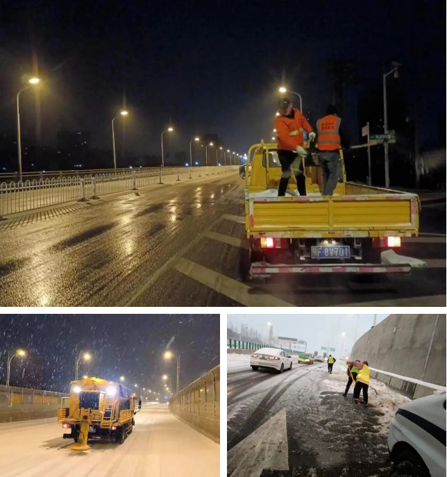 市橋管中心工作人員在各大型橋梁上融冰除雪