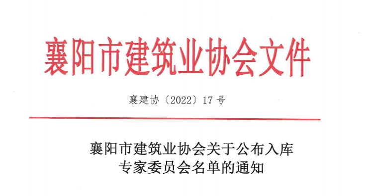 附件 襄建協〔2022〕17號襄陽市建筑業協會關于公布入庫專家委員會名單的通知(1).pdf 【查看全文】