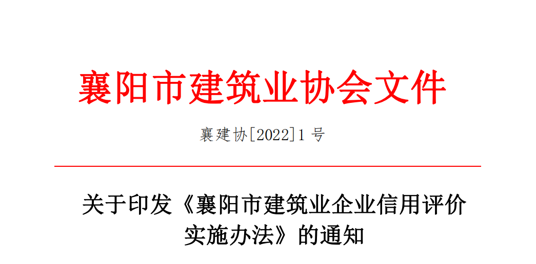 關于印發(fā)襄陽市建筑業(yè)企業(yè)信用評級的通知及信用評級管理辦法附件:關于印發(fā)襄陽市建筑業(yè)企業(yè)信用評級的通知... 【查看全文】