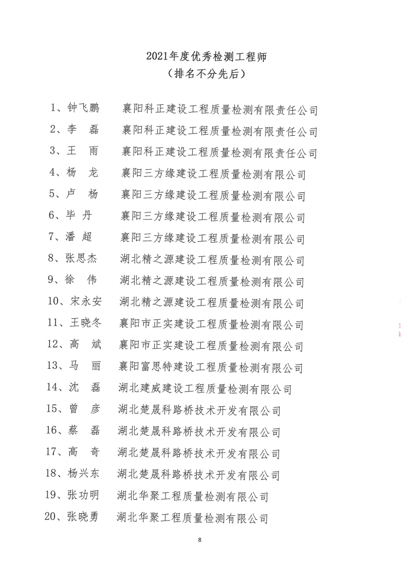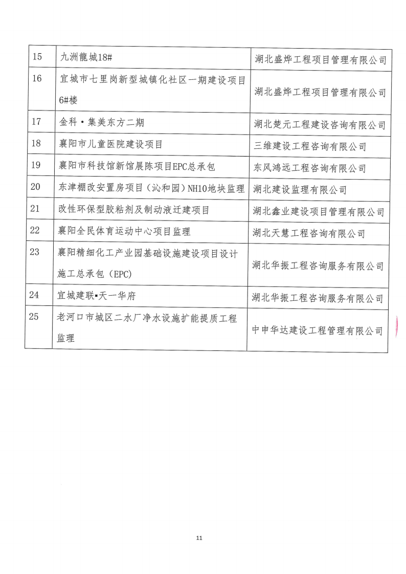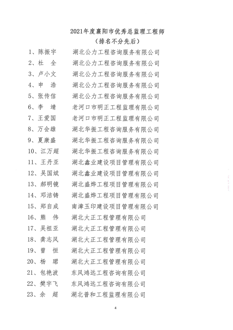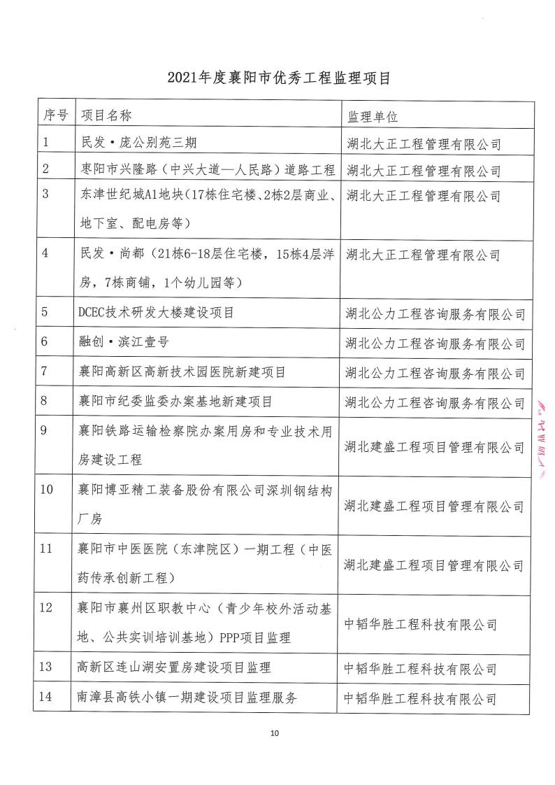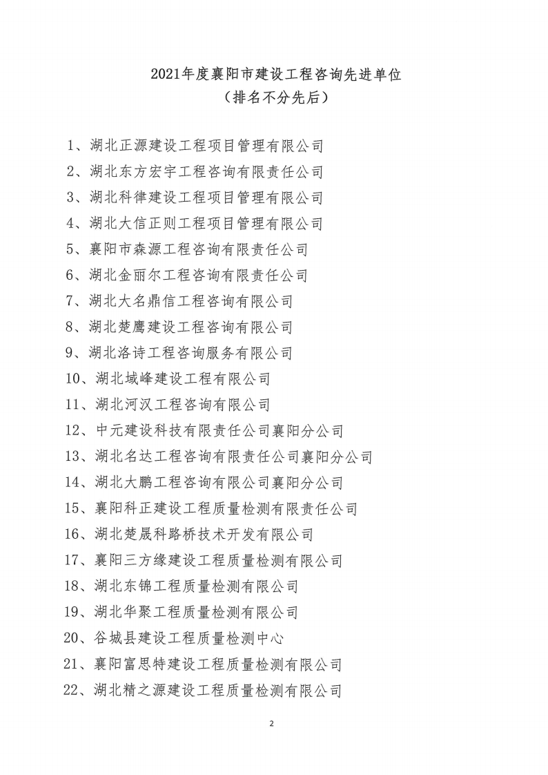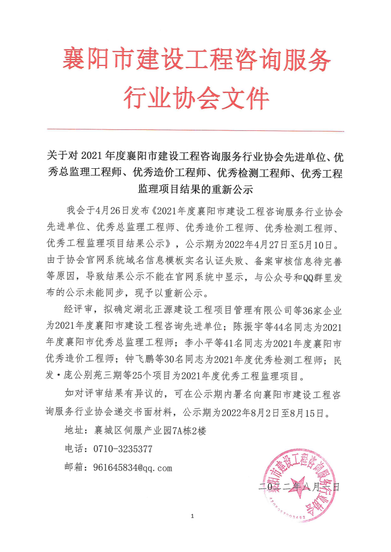 關(guān)于對2021 年度襄陽市建設(shè)工程咨詢服務(wù)行業(yè)協(xié)會先進(jìn)單位、優(yōu) 秀總監(jiān)理工程師、優(yōu)秀造價工程師、優(yōu)秀檢測工程師、優(yōu)秀工程 監(jiān)理項目結(jié)果的重新公示