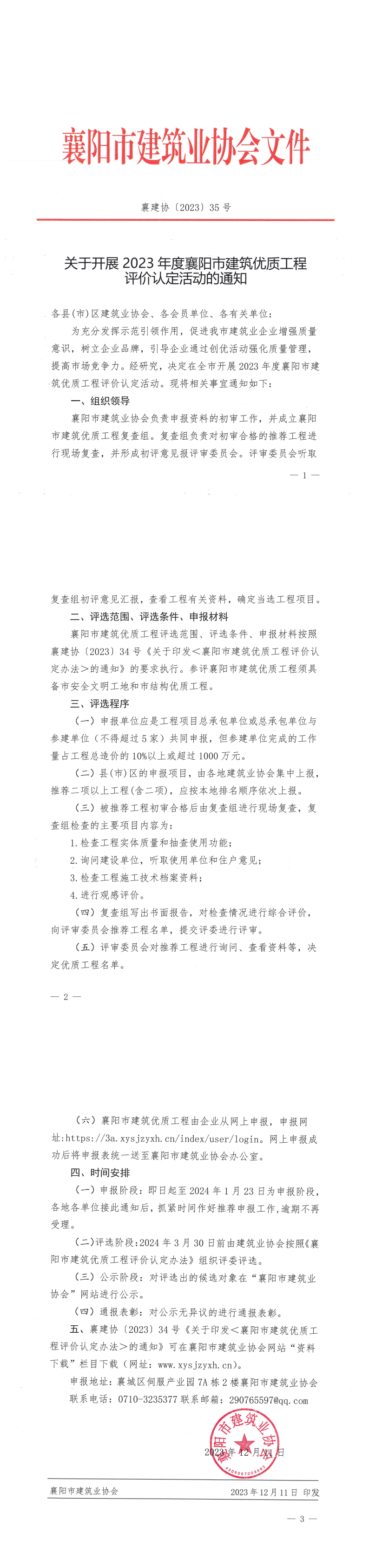 五、襄建協(xié)〔2023〕34號(hào)《關(guān)于印發(fā)<襄陽(yáng)市建筑優(yōu)質(zhì)工程評(píng)價(jià)認(rèn)定辦法>的通知》可在襄陽(yáng)市建筑業(yè)協(xié)會(huì)網(wǎng)站“資料下載”欄目下載(網(wǎng)址:m.tuosao.cn)。