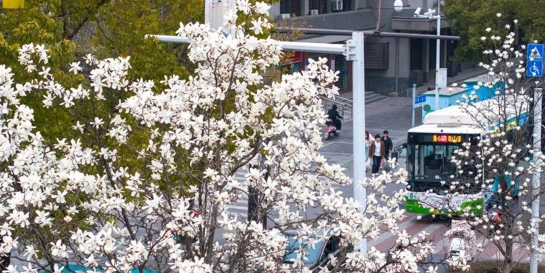 玉蘭盛開,滿樹繁花似雪,清香四溢