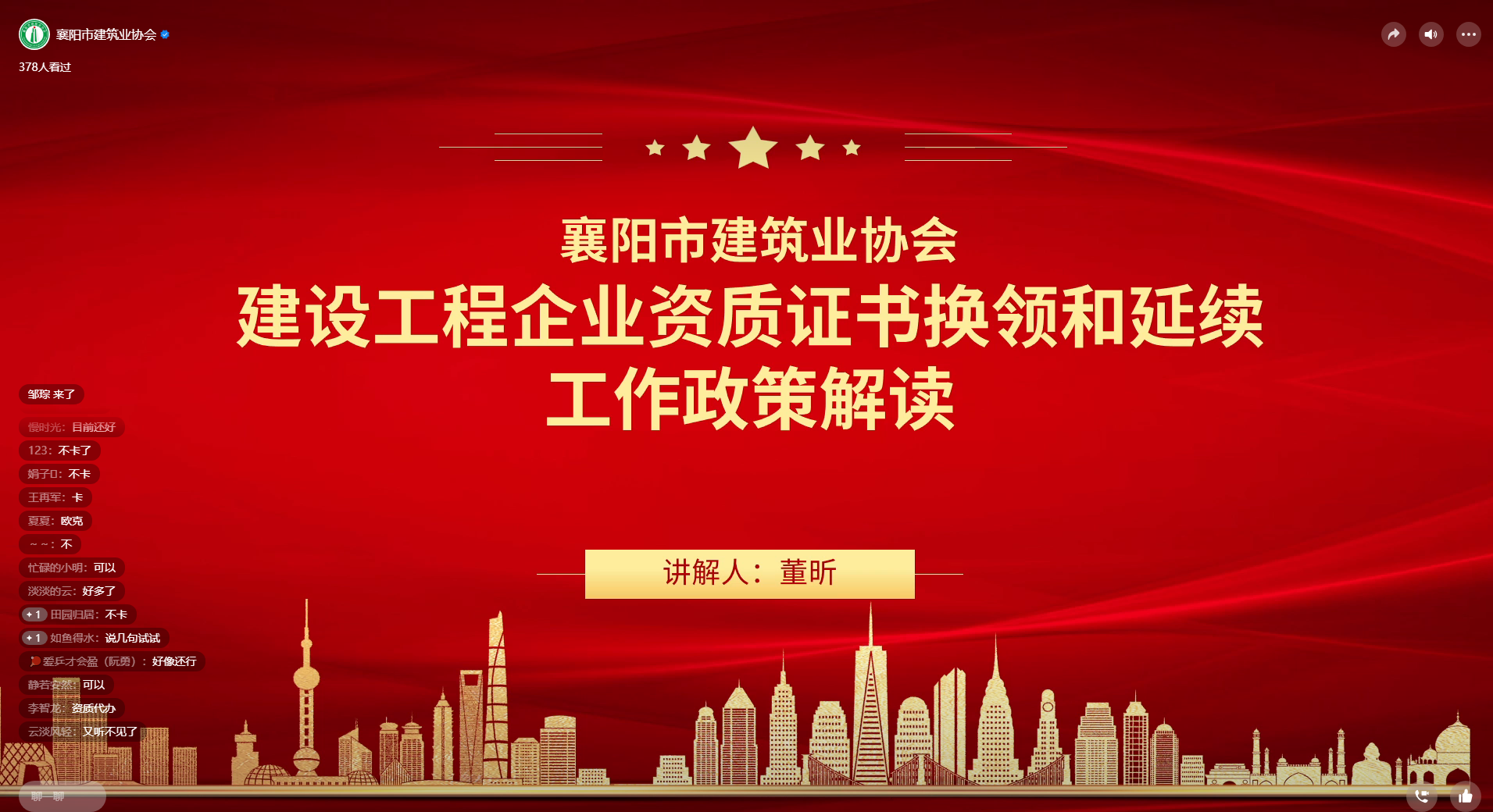 襄陽市建筑業協會 開展有關建設工程企業資質證書換領和延續工作政策解讀專題講座
